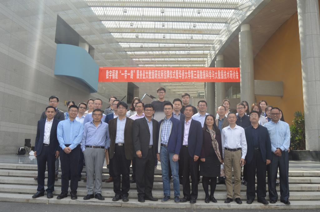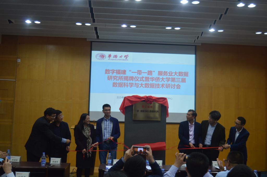 3月30日上午,数字福建“一带一路”服务业大数据研究所揭牌仪式暨华侨大学第三届数据科学与大数据技术研讨会在厦门校区王源兴国际会议中心G-203顺利召开。厦门大数据中心数据部主任柯国鸿,华侨大学研究生院院长王丽霞、统计学院院长胡日东、社科处副处长侯志强、信息处副处长陈江,大连理工大学系统工程研究所所长郭崇慧,厦门大学数据挖掘中心副主任许永洪,闽南师范大学数学与统计学院副院长林福财,中国国际信息技术(福建)产业园管委会副主任余君伟、厦门卫星定位应用股份有限公司副总经理江培舟等相关合作企业代表,及华侨大学相关学科师生代表出席会议。华侨大学现代应用统计与大数据研究中心主任陈教授主持揭牌仪式。